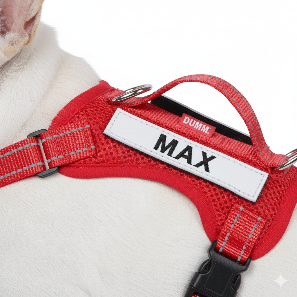 Add your dog’s name and phone number to their harness for a unique touch. This custom name tag not only looks stylish but also helps ensure your pup can be easily identified and safely returned if they ever wander off.
